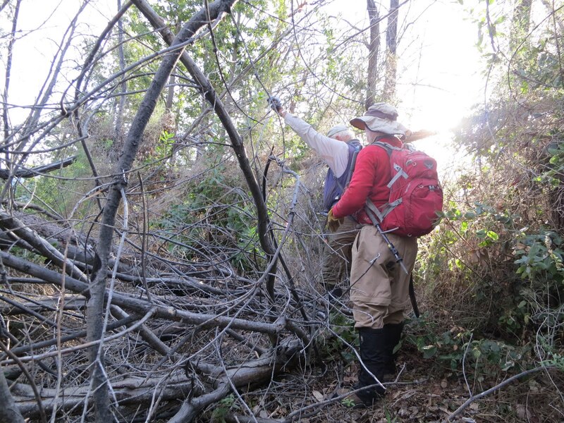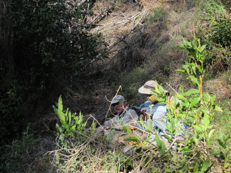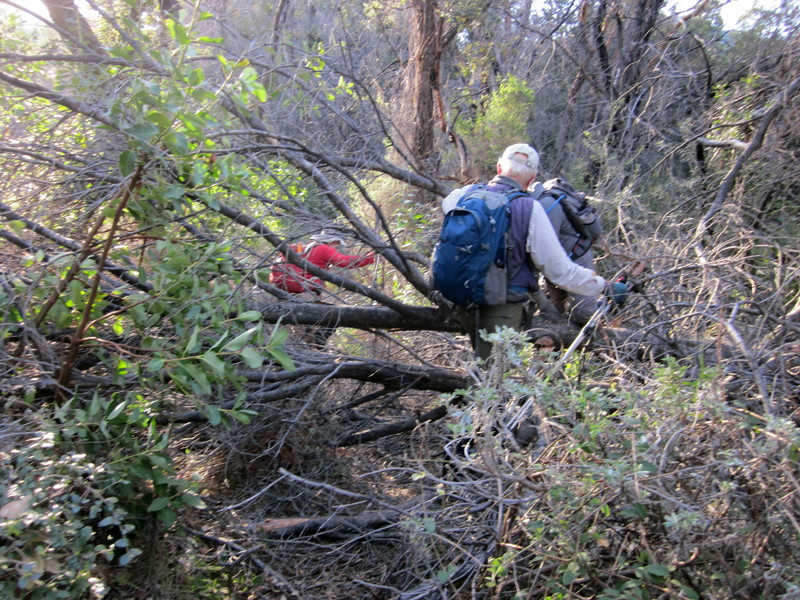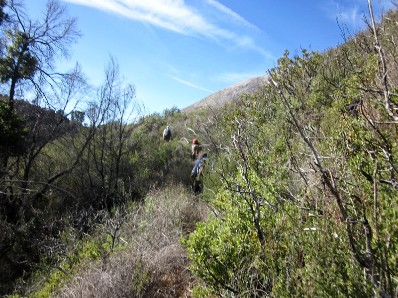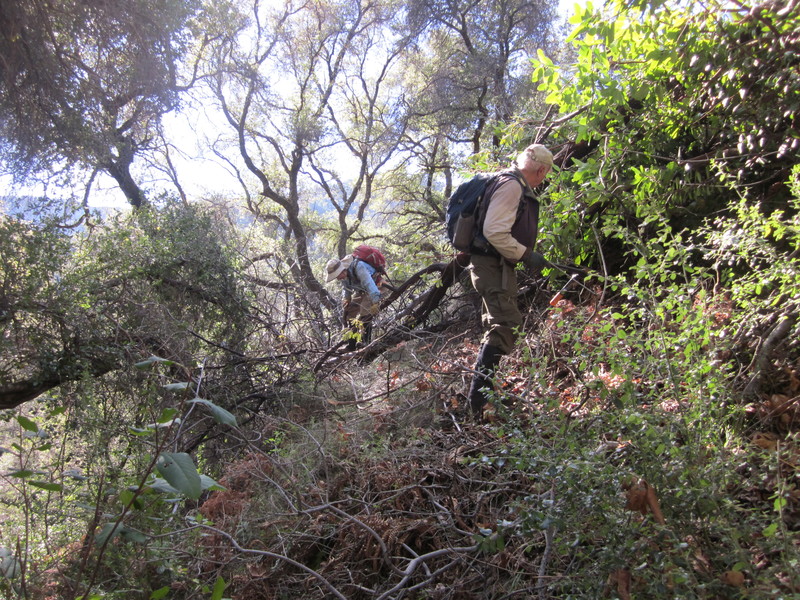 Afterward, bushwacking upslope to find the trailbed